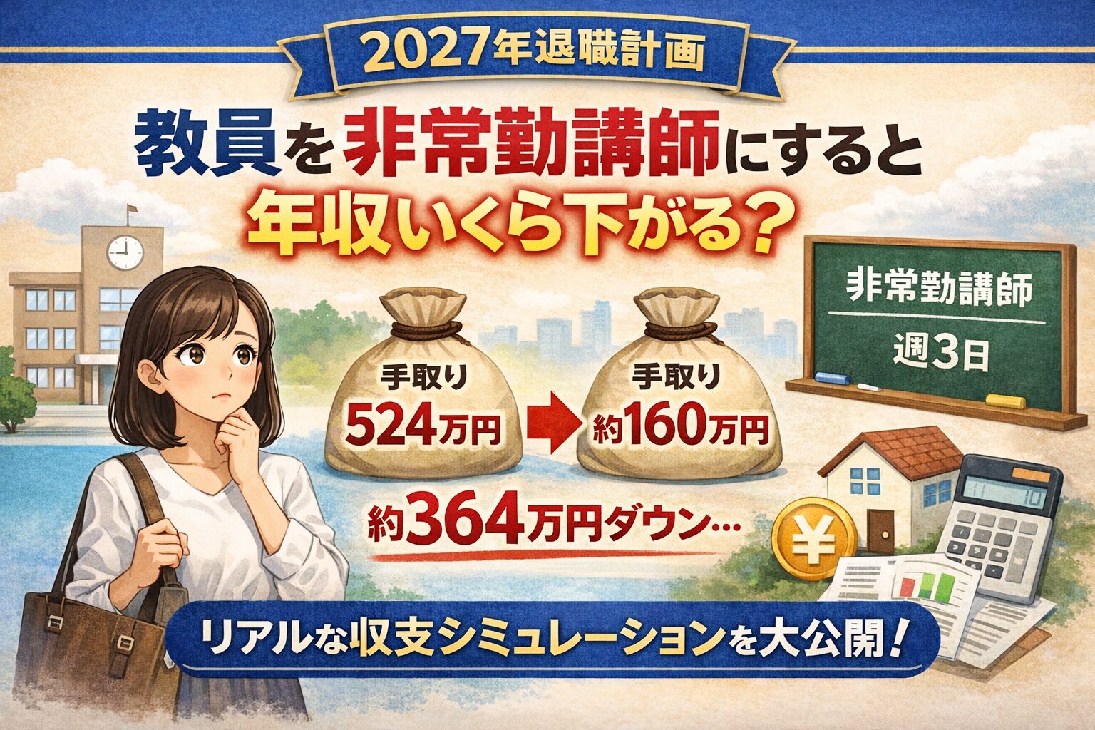 2027年3月、妻は正規教員を退職し、非常勤講師になる予定です。