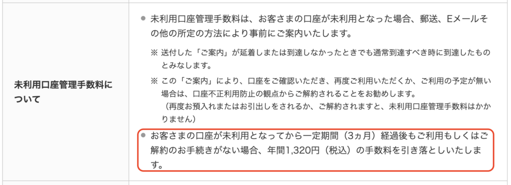 - 口座維持手数料がかかるかもしれないから